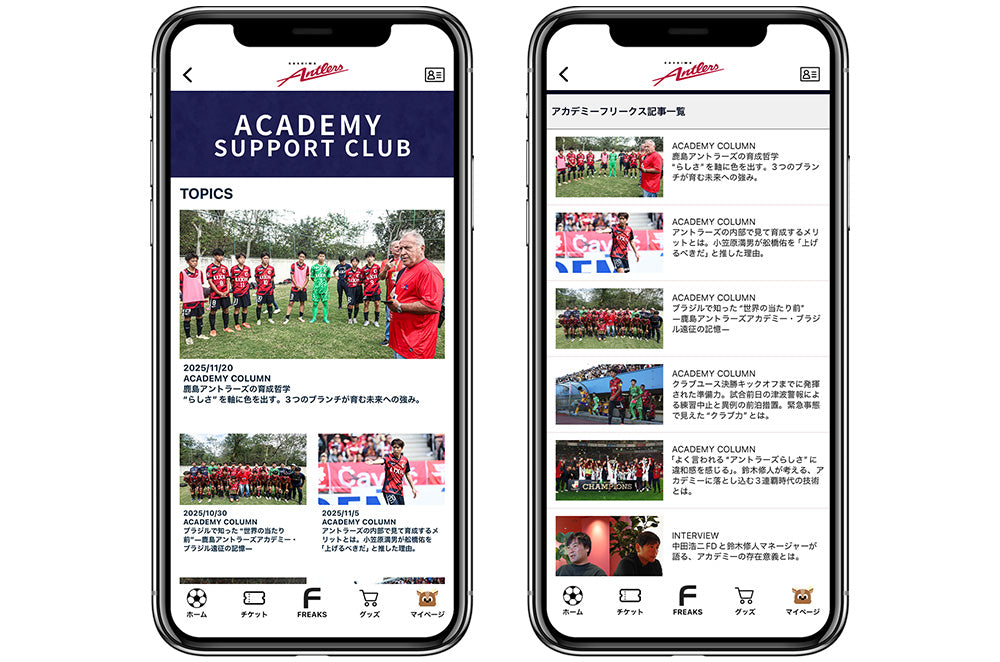 アカデミーサポートクラブは、鹿島アントラーズアカデミーの活動を支援いただき、鹿島アントラーズの未来を担う選手をともに育てていただけることを目指して誕生したアカデミーのファンクラブです。