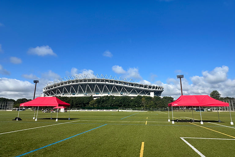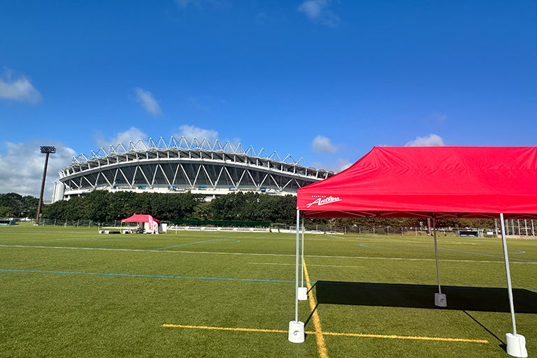 今回整備したテントは、夏場の厳しい暑さから選手・スタッフや利用者の皆様を守る暑熱対策として、また各種イベントで活用させていただきます。
