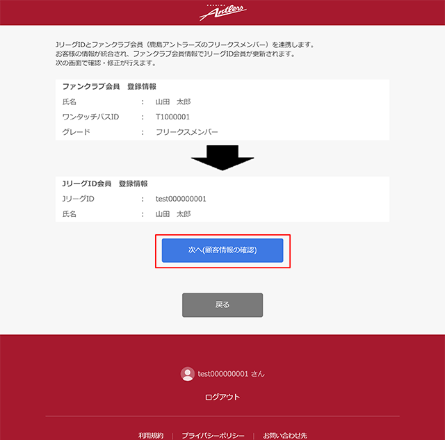 マイページへの初回ログイン時にファンクラブ会員番号(ワンタッチパスID)との紐づけ設定が必要です。
