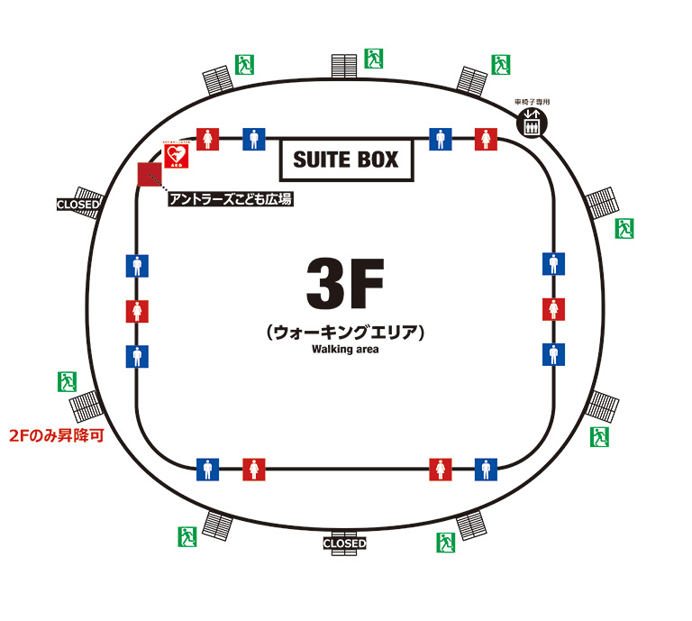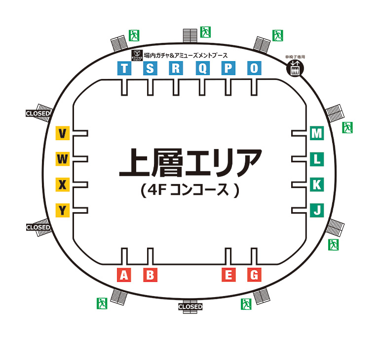 ※ウエストゾーン、イーストゾーンを含め、上層エリアのチケットをお持ちの方は、4Fコンコースから観戦スタンドへお入りください。