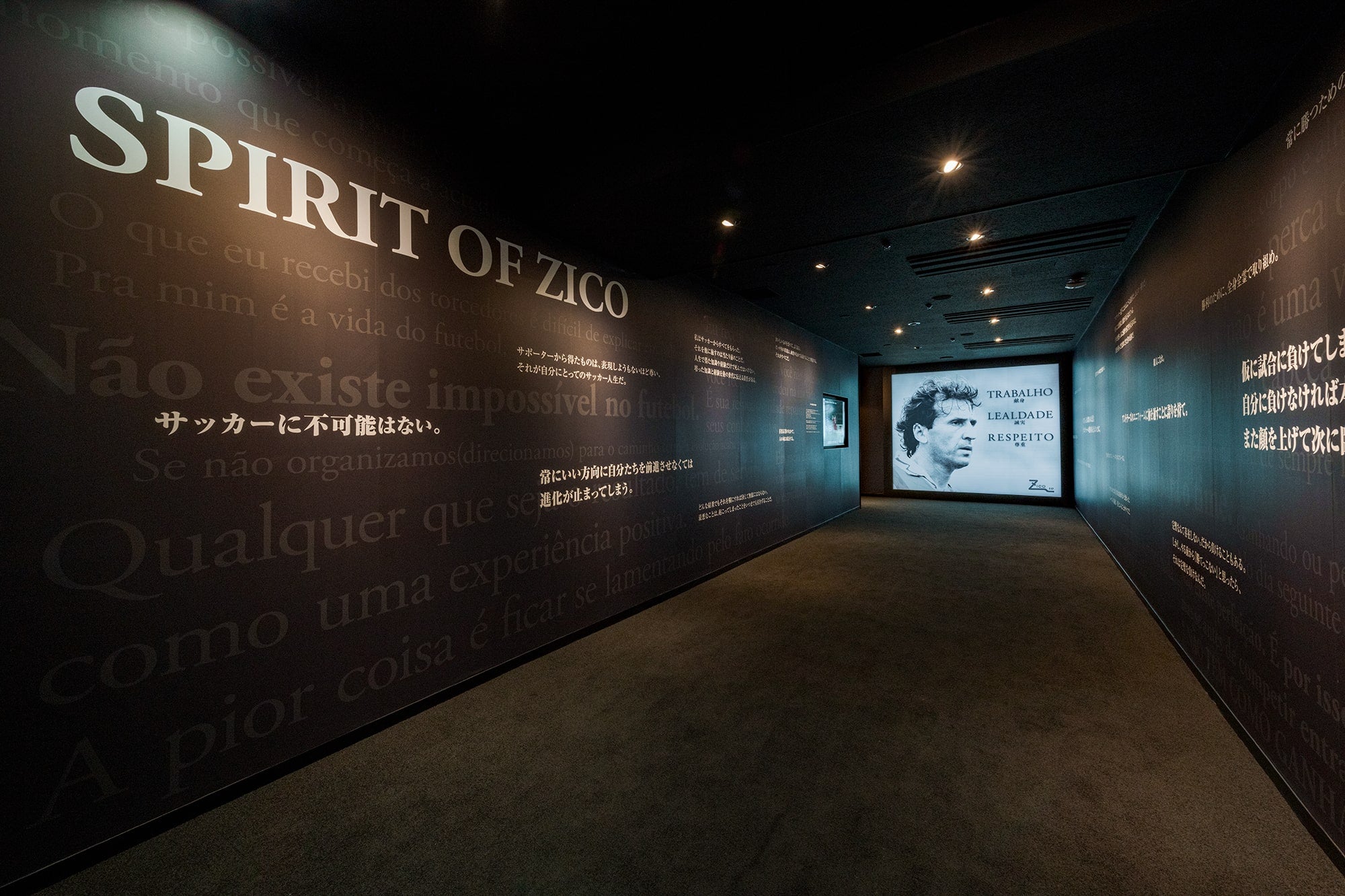 展示スペースの入り口は、アントラーズの礎を築き、今もなおクラブの象徴であり続けるジーコTDの言葉で埋め尽くされています。