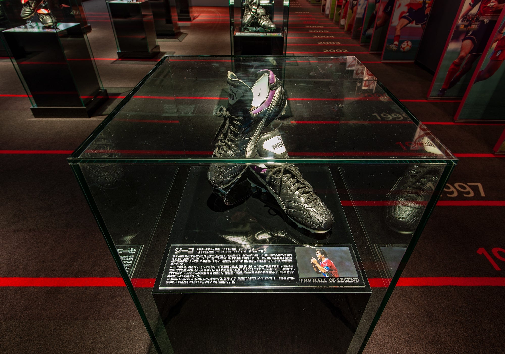 ジーコTDをはじめとする、クラブレジェンドの記念展示はもちろん、年代別に歴代在籍選手もパネル展示しています。