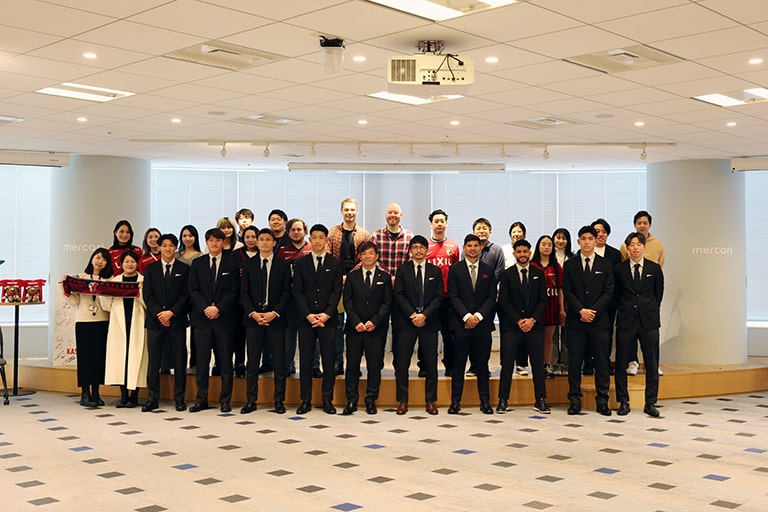 シーズン前にパートナー企業に選手が訪問します。