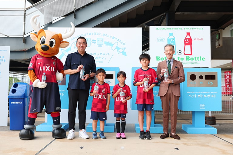 メルカリスタジアムにて使用・消費されたペットボトルを各社連携のもと、サントリー製品のペットボトルへ100%水平リサイクルをしています。