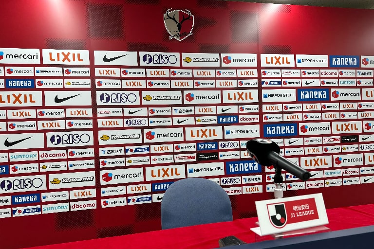 監督会見などで利用するインタビューボードに企業ロゴを掲出します。