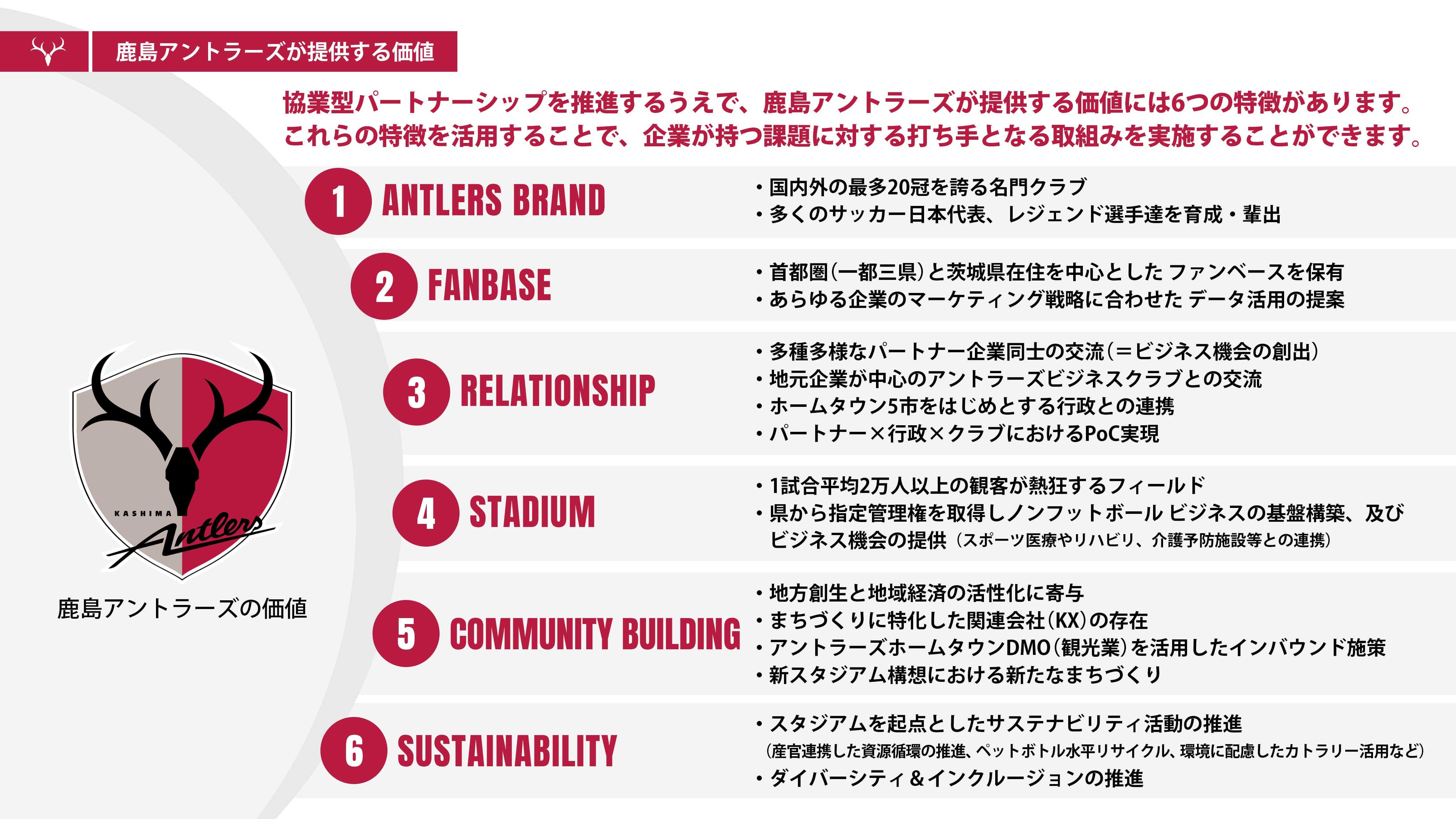鹿島アントラーズとの協業の取り組みが可能です。